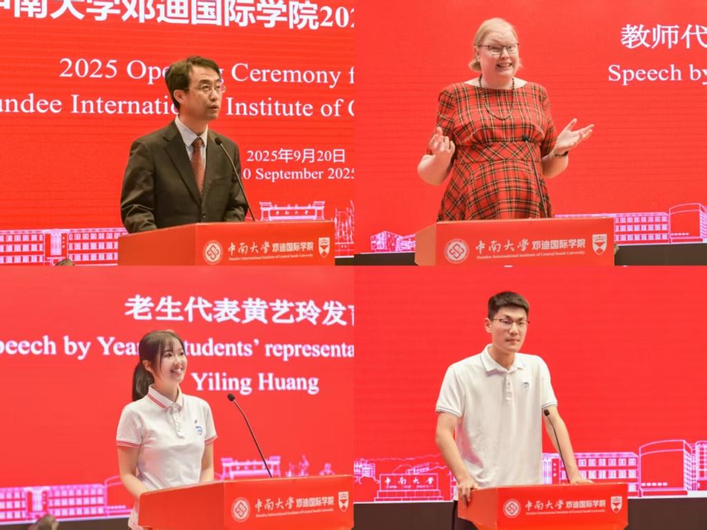 外方执行副院长Karen Petrie作为教师代表在发言中介绍了邓迪大学的团结协作、有所作为、以人为本、为人正直、追求卓越等教育理念。她鼓励新生积极面对挑战,主动参与教学互动,善用中外合作办学资源,培养独立思辨与批判性思维能力,成长为具备全球视野的探索者。