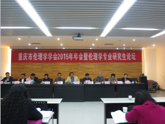 2015年4月11日,重庆市伦理学学会2015年学术年会暨研究生论坛在四川美术学院举行,学会会员与来自我市各高校伦理学及相关学科专业研究生代表参会。重庆市教委与四川美术学院相关领导到会祝贺并致辞,重庆市伦理学学会会长、西南大学副校长崔延强教授致大会开幕词。重庆市伦理学会副会长、我部庞永红教授,学会副秘书长、我部魏强副教授,学会理事、我部董玲副教授与部分研究生代表受邀出席。