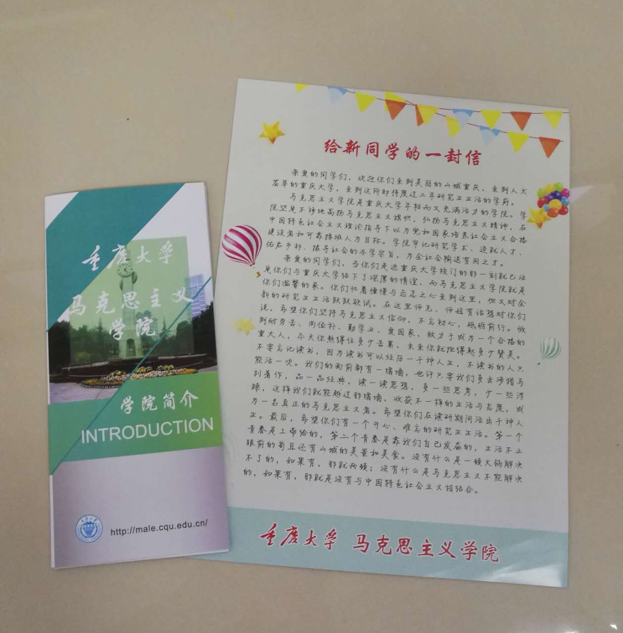 的关怀和问候。与此同时,为欢迎新同学加入马院这个大集体,学院师哥师姐们特地为新生写了一封祝福信,并为新生贴心制作生活小贴士,以便新生迅速了解学校内部以及学校周围的生活配套设施。