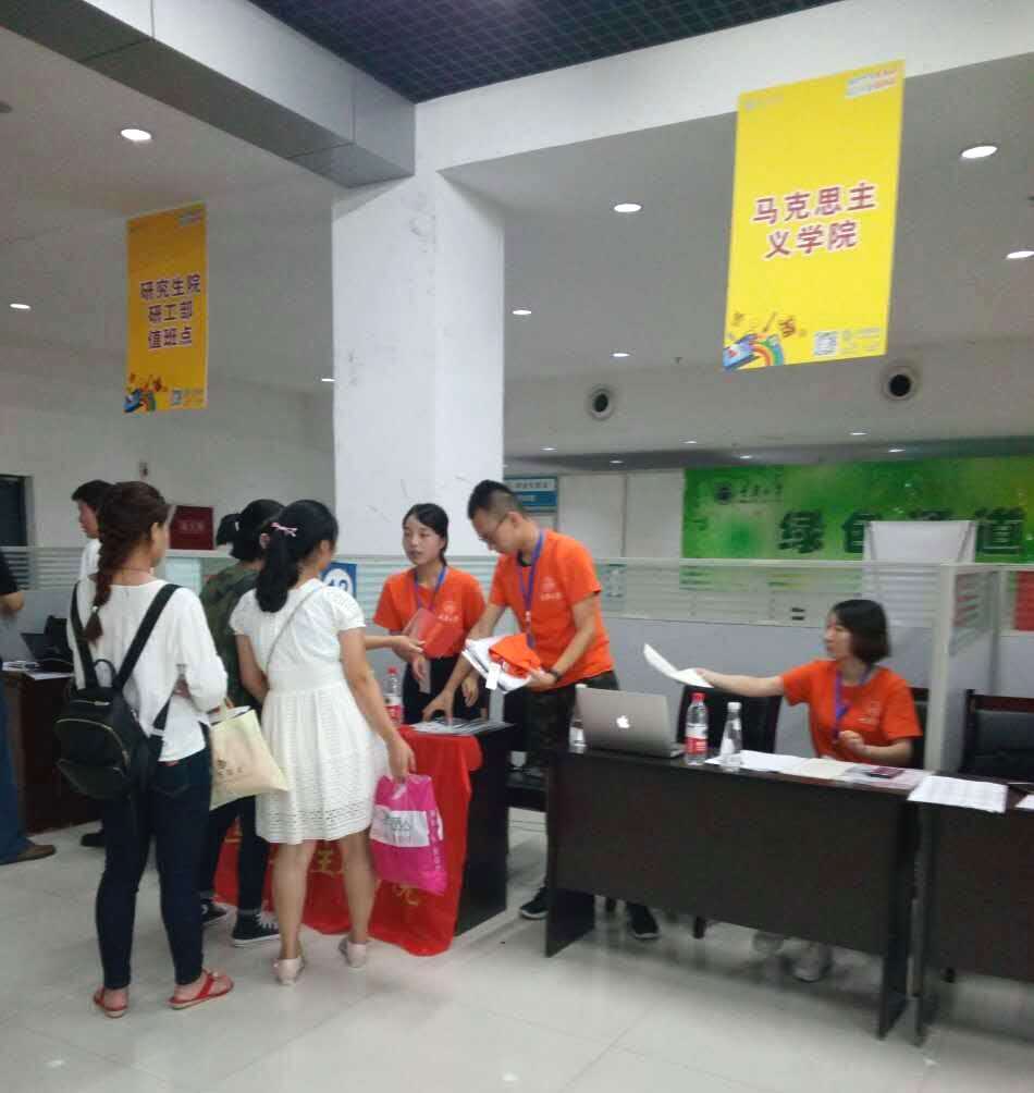 迎来了一批青春激昂的莘莘学子,他们带着对研究生生活的憧憬,加入了马克思主义院这个大家庭。学院领导高度重视此次迎新工作的展开,亲自指导迎新工作前期策划并多次到现场慰问新生与值班人员。学院各部门工作人员相互配合,积极参与,使迎新工作得以顺利开展。