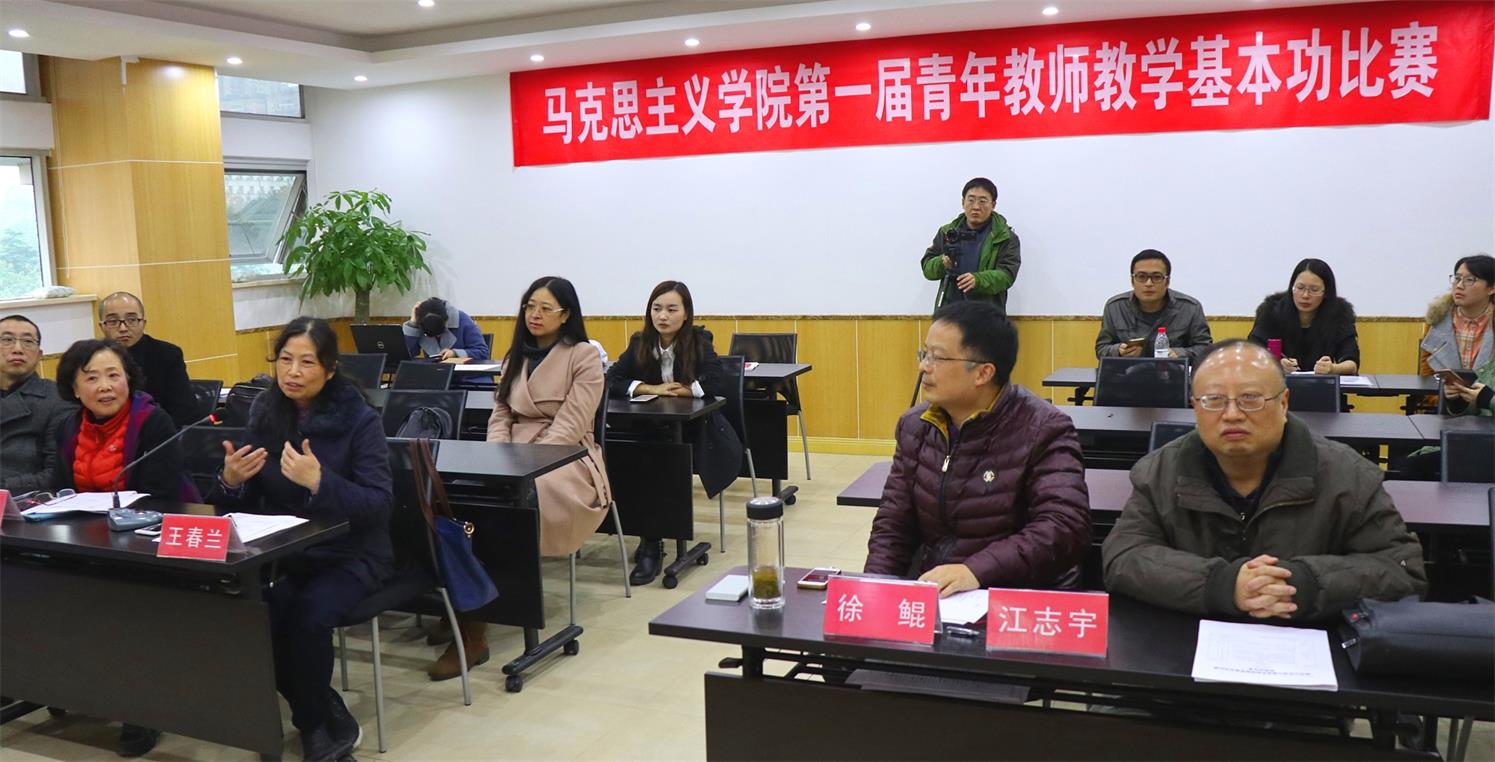 于11月30日下午2:30在学院412室举行了第一届青年教师教学基本功比赛。进行了现场教学演示。本次比赛,包括教案评审、平时教学效果和现场教学演示等三个环节。徐鲲、王春兰、肖云、江志宇、何兵和袁新荣等老师担任评委。学院各教研室主任和部分青年教师进行了全程观摩。