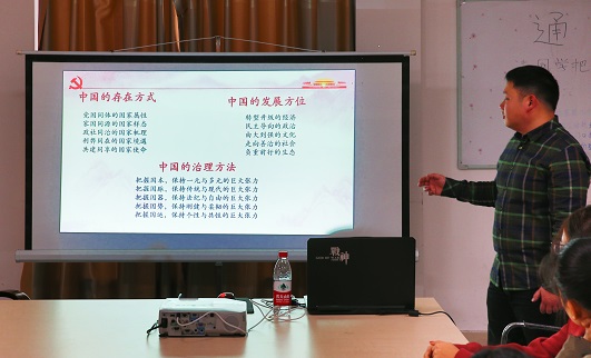 杨老师通过一个个生动形象的例子进行阐释。他从一首“走进新时代”引出了中国共产党的峥嵘岁月与取得的成就,告诉同学们中国共产党带领我们建立了新中国,实行改革开放,学生们要相信党的领导,支持于党的领导。最后杨老师从哲学的角度介绍了中国的存在方式,中国的发展方式,中国的治理方法,同学们对这些概念都有了较为全面的理解。