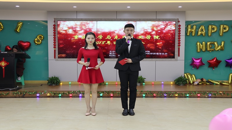 院长(代)肖铁岩、院委副书记(主持工作)罗滌、副院长徐鲲、学院部分老师以及在校的全体研究生。本次元旦晚会邀请了电影学院学生任烨、王雅婷担任主持。