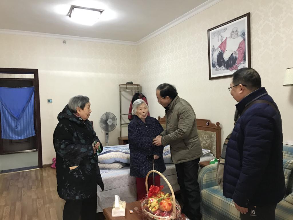 寒假前,肖铁岩院长、杨长福和李丽昆到歌乐山中颐颐养养老院慰问了我院91岁老领导王佩善和80多岁老教师戴宗培,实地参观和考察了养老院的住宿、餐饮、医疗和休闲设施,走进宿舍亲切交流,了解两位老师的日常生活和身体状况。肖院长向两位老师介绍了学院独立运行以来的建设情况。经过近一个小时的亲切交谈,两位老师很开心,感谢学院领导对她们的关心,并祝福学院越办越好。肖院长一行还先后到离休干部杨德林、退休教师高燕丽、吴绍琪等老师家看望慰问。