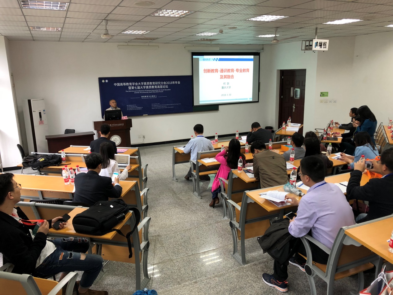 何跃教授在分论坛上的报告主题为《创新教育视角下高校通识教育与专业教育融合》。报告指出,通识教育与专业教育融合既是社会经济发展对我国高等教育提出的必然要求,也是我国高等教育主动适应社会经济发展而做出的必然选择。报告阐述了通识教育、专业教育与创新教育的概念定义及三者之间的关系:一方面,通识教育与专业教育为创新教育奠定了基础,另一方面,创新教育为通识教育与专业教育融合指明了方向。报告最后提出,以创新教育引领通识教育与专业教育融合,从创新意识、创新思维、创新行为和创新人格等维度来培养适合我国经济发展内在要求的“十”字型人才,是我国高等教育人才培养模式转型的可行之路。