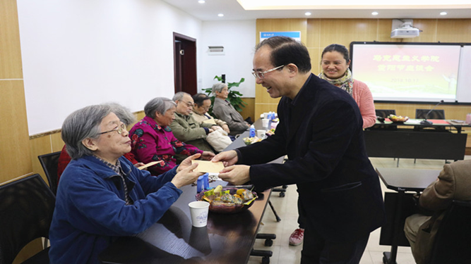 最后学院工会教代会主席杨长福给大家介绍了学院此次离退休慰问费的发放标准和数额,感谢前辈们对学院工作的支持,他表示一定会带领工会为各位老师做好服务工作并祝福前辈们节日安康。
