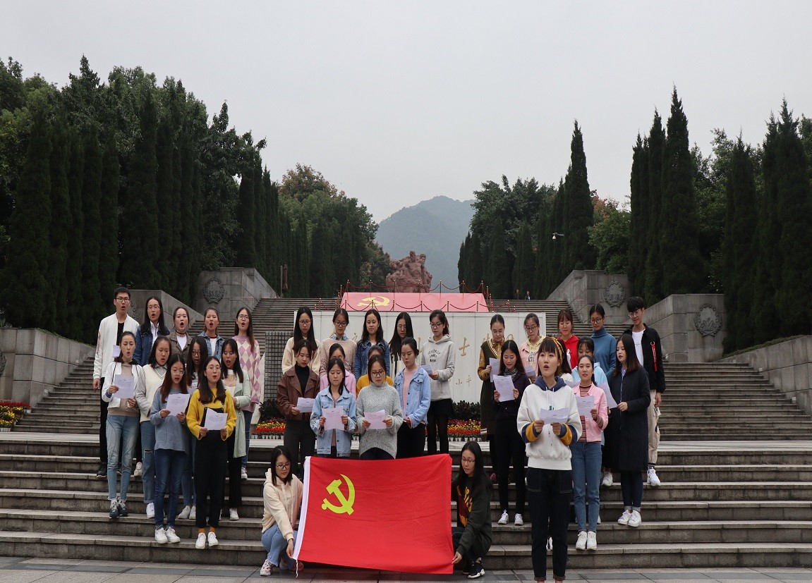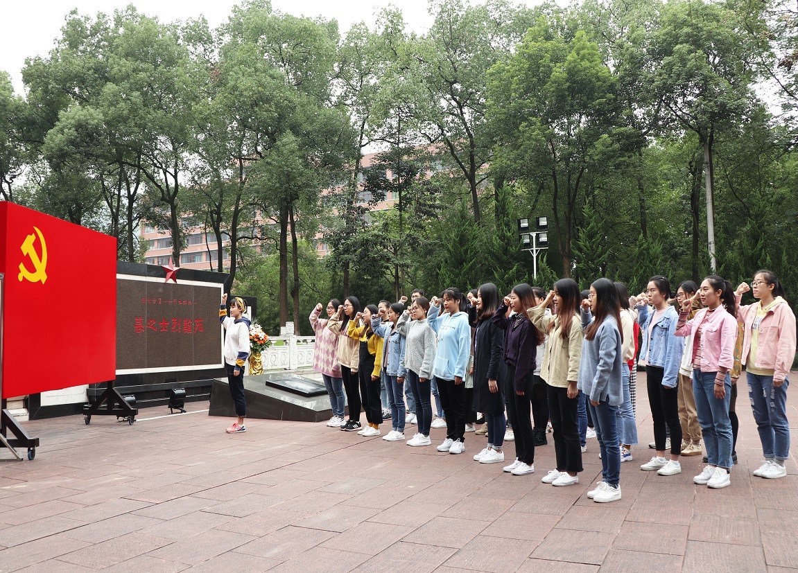 “我志愿加入中国共产党,拥护党的纲领,遵守党的章程……”34名同学齐声宣誓,声音铿锵而豪迈。面向党旗,举起右手,朗朗诵念入党誓词,是每一个共产党员毫无例外要理解的一种庄严仪式,而站在革命烈士纪念碑前,在庄严神圣的党旗下,重温入党誓词,则又多了几分震撼,更是一种终生难忘的经历。重温的不仅是入党的初心,更是对革命先烈们坚贞不屈、百折不挠的革命精神的追忆。