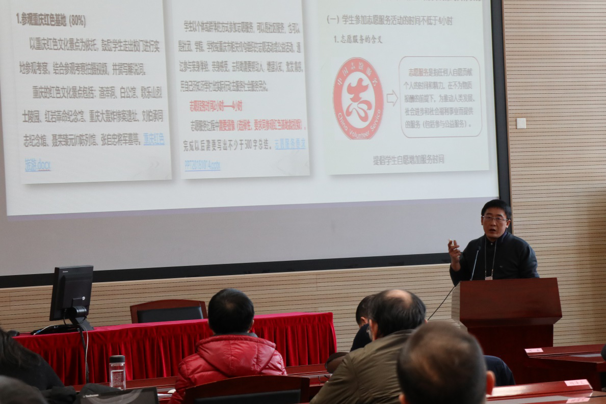 陈飞以集体备课、嘉陵论坛、演讲比赛、小组讨论、经典阅读等为例,对马克思主义基本原理教研室教学工作进行总结。他指出,该教研室目前存在学生学习积极性不高、部分教学知识点难度较大、课堂小组讨论效果有限、教师无法充分相互听课、三进工作有待进一步加强等问题。下学期,计划针对这些问题进行精准突破,从而实现教学工作进一步创新与发展。