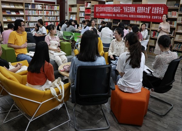 理论分馆举行,共读《五四三人行》、《五四之魂:中国知识分子精神史》、《重返五四现场:1919,一个国家的青春记忆》三本与五四运动相关的经典书目,共话先辈们的青春魅力与爱国情怀。本次读书会以线上、线下两种形式结合开展。