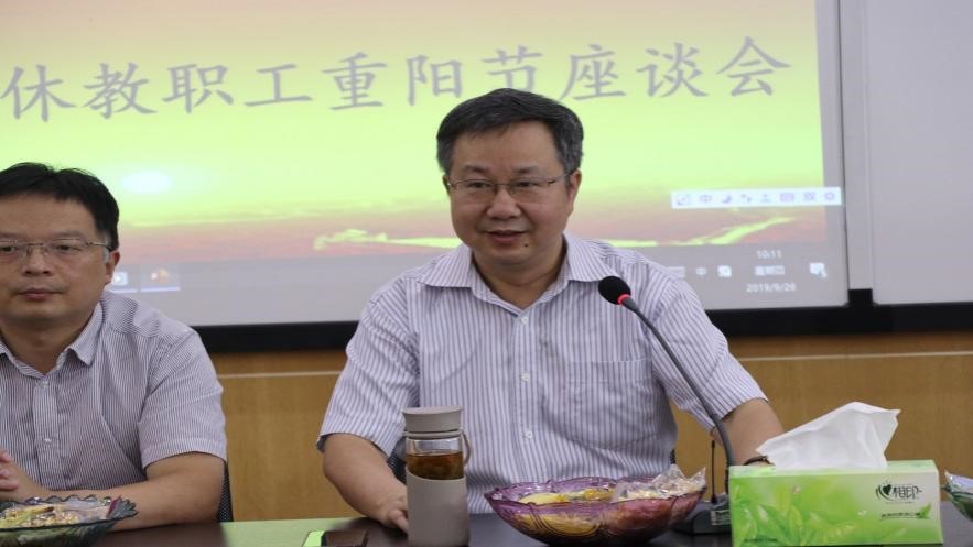 在学院412教室举行了重阳节离退休教职工座谈会。学院领导班子、工会教代会主席杨长福以及三十余位离退休教职工参加座谈会,会议由学院党委书记罗滌主持。