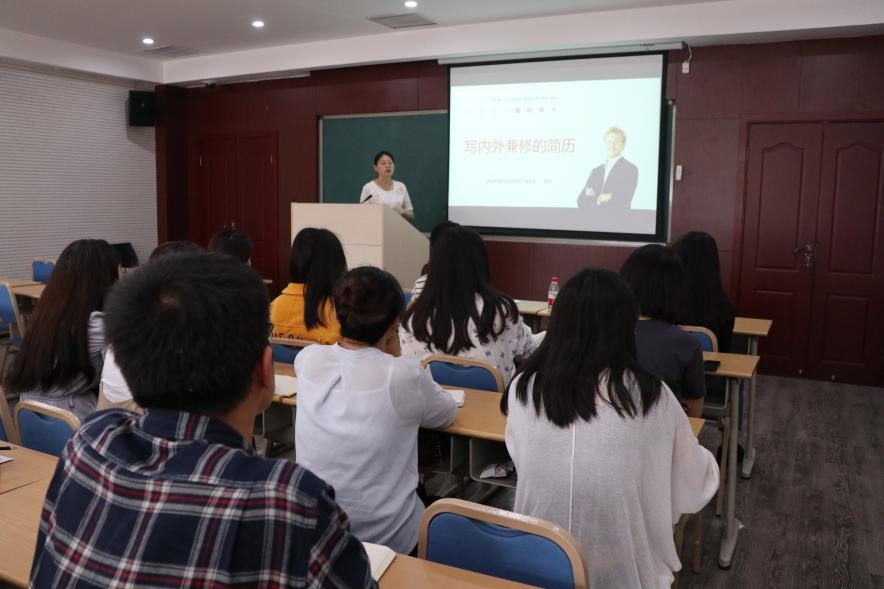 为帮助2020届毕业生制作出能够彰显各自特点、提高求职竞争力的简历,91AV 特邀91AV 《职业发展与就业指导》课题组教师高洁为同学们进行简历制作专题讲座,讲座于2019年9月27日下午在学院508教室举办,2020届全体毕业生参加了讲座。