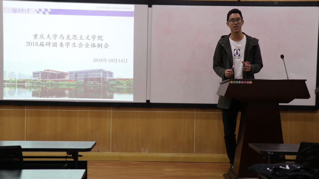 学生会主席李正超对研团委学生会一个月以来的各项工作进行了总结,并表达了对研团委所有成员工作的感谢。