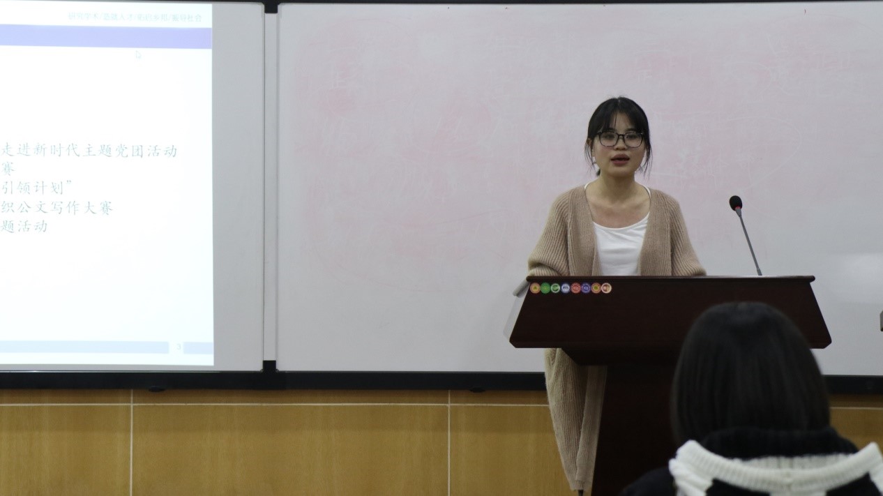 接下来,何佳佳对近期研团委的工作进行了安排。她倡导全体干事要勇于创新、保持积极性、提高执行力,为团委学生会贡献自己的力量。