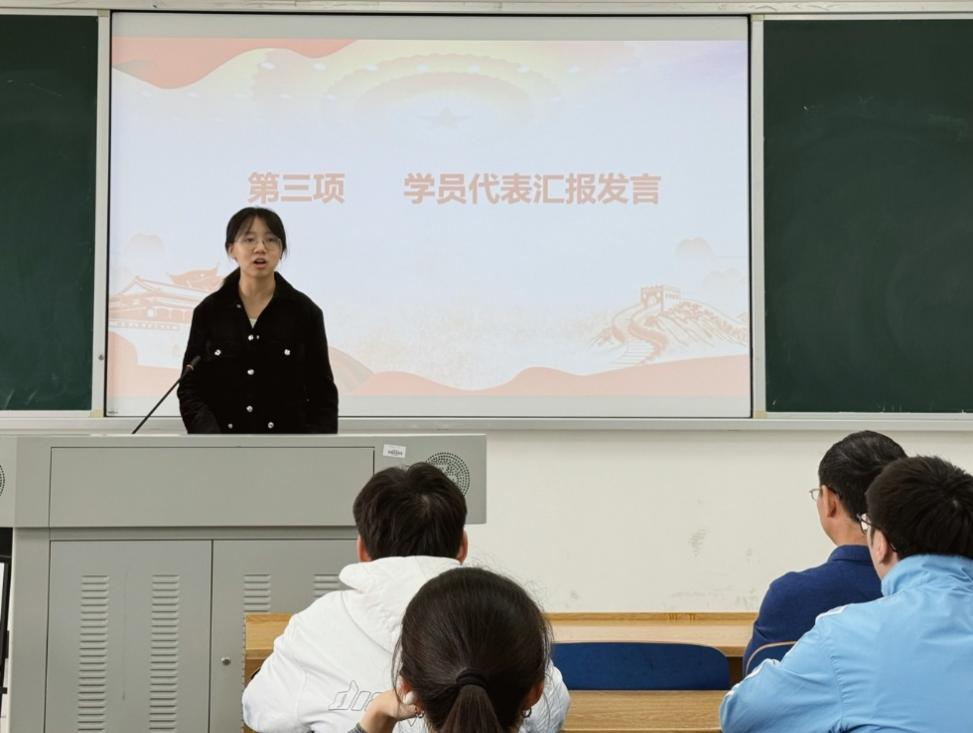 研究生张志分享感悟。她谈到,从理论研读到党性教育,每一次学习都让她深感党员责任的千钧之重。她承诺,未来将强化理论武装,以“干一行爱一行”的精神锤炼专业本领,在奉献中践行初心,争取早日成为一名合格的共产党员。