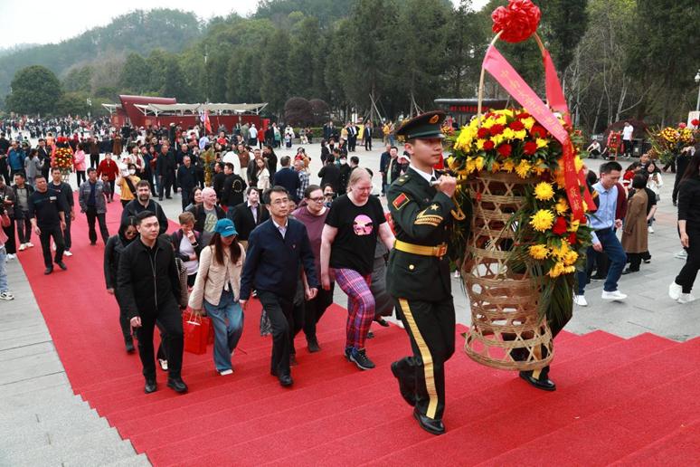 全体人员在毛主席铜像前肃立,敬献花篮并鞠躬致敬,表达了对毛主席的敬仰和怀念之情。