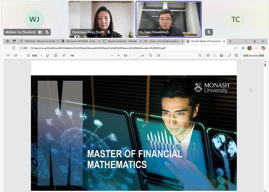 5月16日下午,澳大利亚蒙纳士大学金融数学硕士项目线上宣讲会成功举办。本次宣讲会由澳大利亚蒙纳士大学高级讲师、博士生导师Oscar Tian担任主讲人。