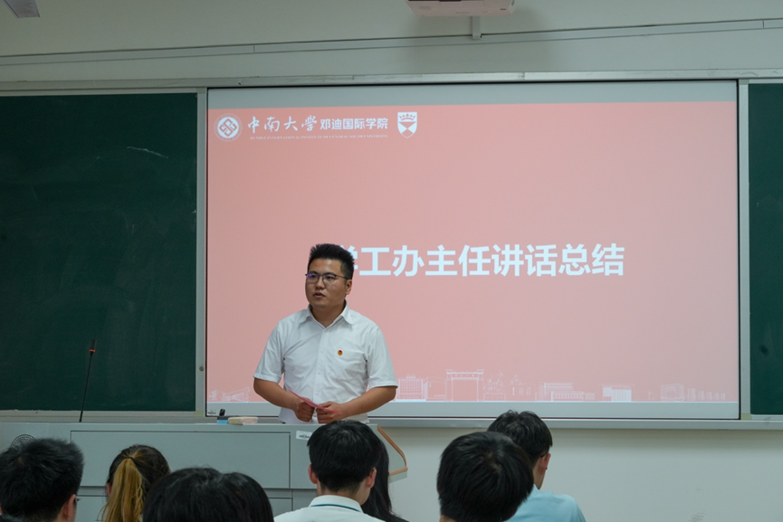 表彰授奖结束后,学工办主任王晓宗进行总结讲话。王晓宗老师就感谢、初心、传承三个关键词进行了分享。他希望全体学生干部,不忘初心,切实履行学生干部的职责,发挥模范作用,传承与发扬团队的优良作风,做到基础工作要扎实,特色工作要出彩。