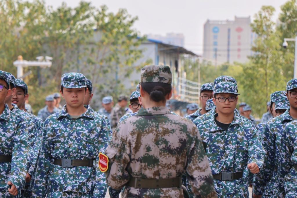 约二十分钟的军姿过后,是持续一天的行进间动作练习。为了让同学们保持好动作,各排长各显神通。或是背诵古诗文,或是分享亲身经历,让同学们在单调的“定手定腿”环节中也能品出些许趣味。一天的辛苦练习取得了成效,各方阵齐步整齐有序,正步铿锵有力。