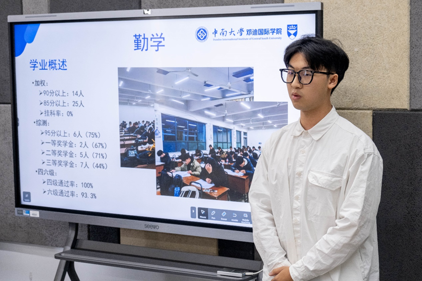 随后,5位班委代表依次上台,代表申请先进班集体的班级进行答辩。他们从学业成果、班级氛围等方面进行介绍,展示了各优秀班集体的突出特长与优良风貌。答辩过程中,评审老师认真聆听,实时反馈,针对性地为每位同学提出建议,指明改进方向。