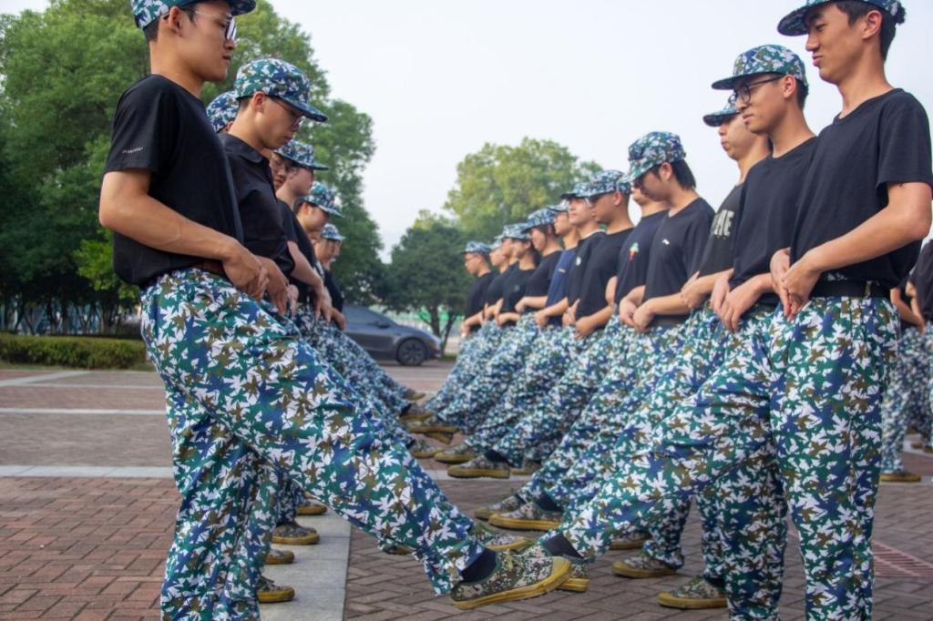 上午的训练以齐步走为重点。在教官们的指导下,同学们反复调整摆手高度与行进节奏,力求整体协调。“手臂前摆定位准确,后摆自然有力”——在教官清晰洪亮的口令声中,同学们的动作逐渐变得整齐划一。