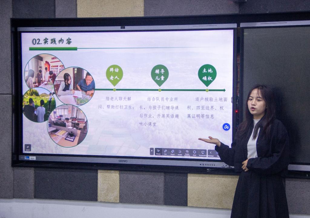 本次答辩共有六支暑期实践队伍参与。分享人用生动的语言、详实的案例和真挚的情感讲述了今年暑假各实践小组深入田间地头用活力服务乡村、扎根社区基层用耐心温暖老人、奔赴偏远地区用知识点亮孩子未来的实践故事。有对老人的关怀,有对孩子的指导,也有对乡村的帮扶。他们将青春的汗水挥洒在基层的服务当中,将青春的价值具象为实实在在的行动。