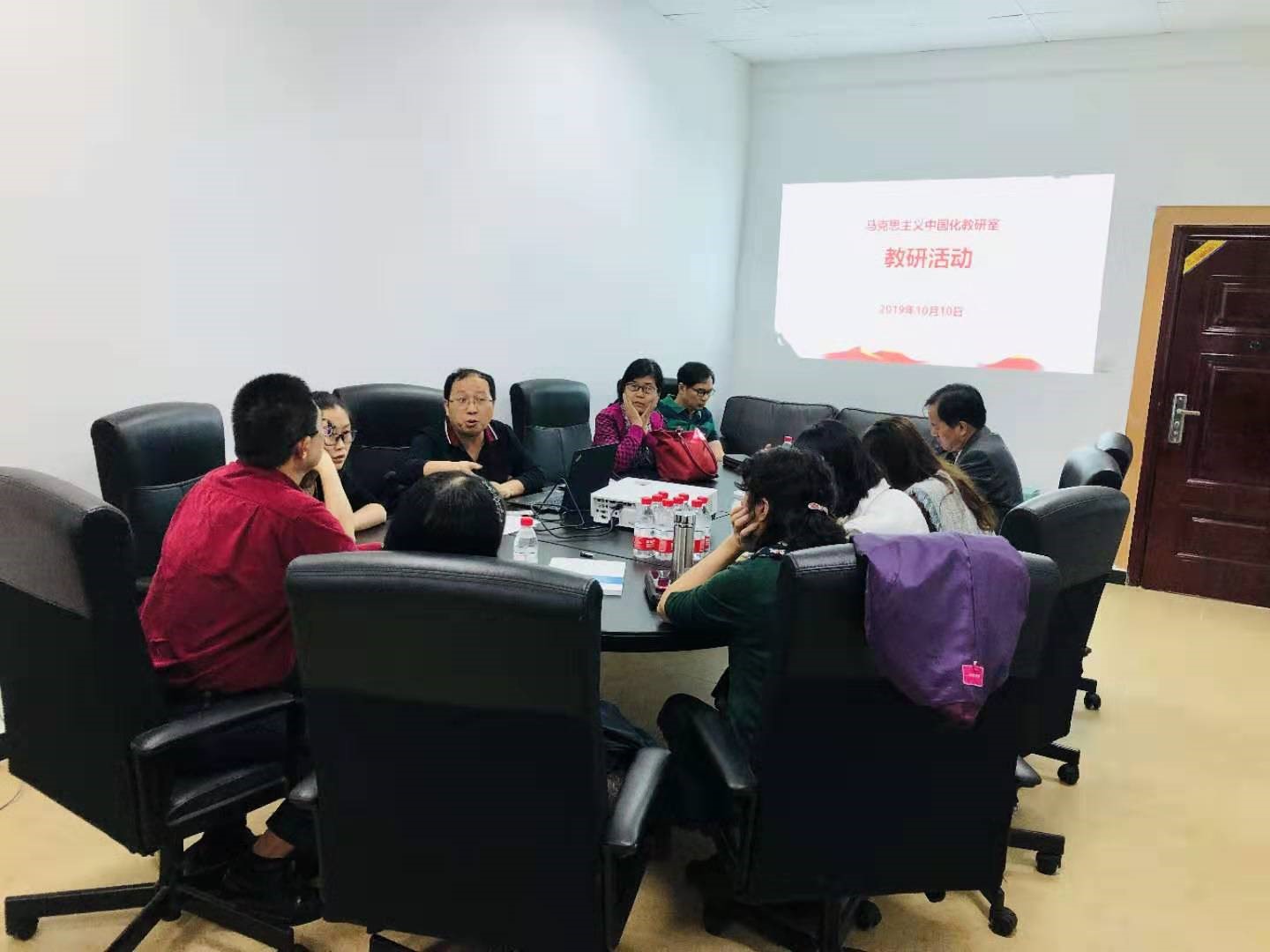 新学期开学以来,我院马克思主义中国化教研室继续坚持每两周一次教研活动和集体备课制度。为了保证在线课程的录制高质量完成,教研室分别于2019年9月5日、10月10日在学院402B开展《毛泽东思想和中国特色社会主义理论体系概论》在线课程建设研讨会。