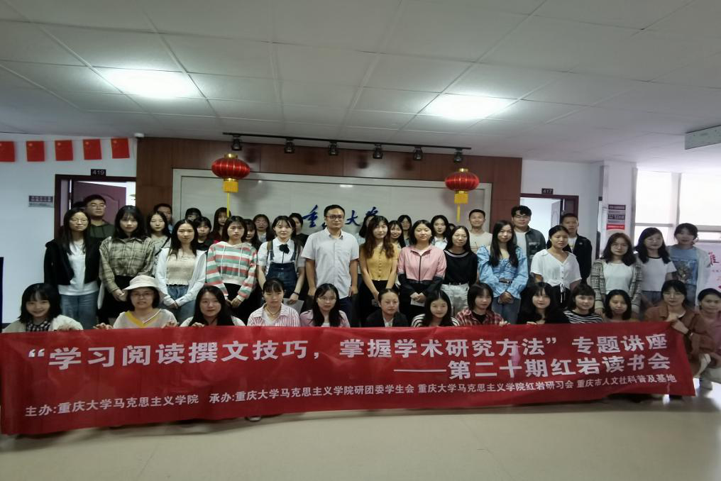第二十期“红岩读书会”在学院408教室举行。此次读书会邀请学院陈飞副教授作了题为“学习阅读撰文技巧,掌握学术研究方法”的专题讲座,读书会由研究生周玲玉主持,学院2018级、2019级、2020级研究生聆听了此次专题讲座。