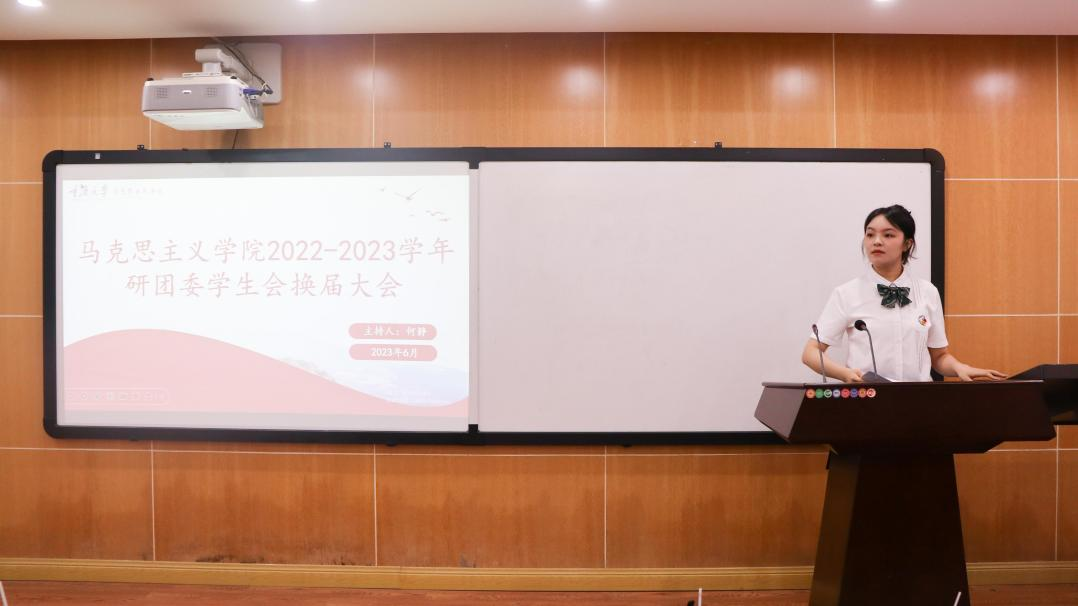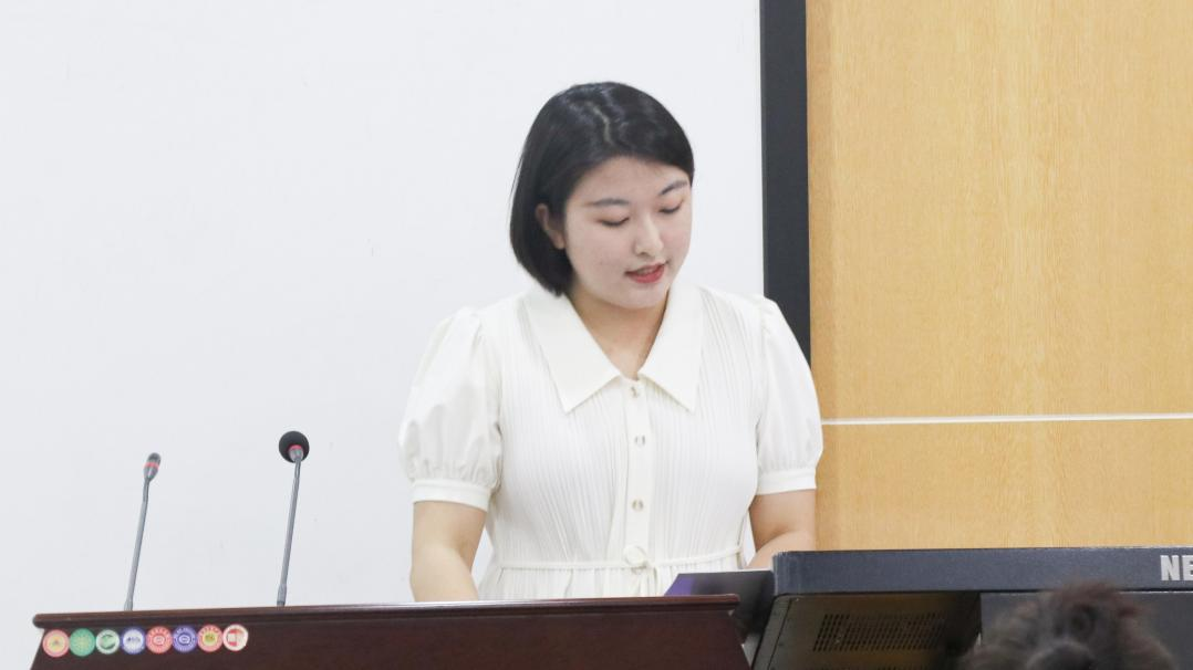 大会伊始,第六届研分会负责人董瑞祺作2022-2023学年工作总结。她围绕队伍建设、工作成绩和未来展望几个方面对过去一年的工作进行总结和反思。她谈到各部门在过去一年始终坚持“全心全意服务同学”的工作宗旨,认真高效完成了各项任务,取得了突出的成绩,并对即将就任的新一届学生会成员提出了殷切期盼,鼓励大家做好今后的学生会工作。