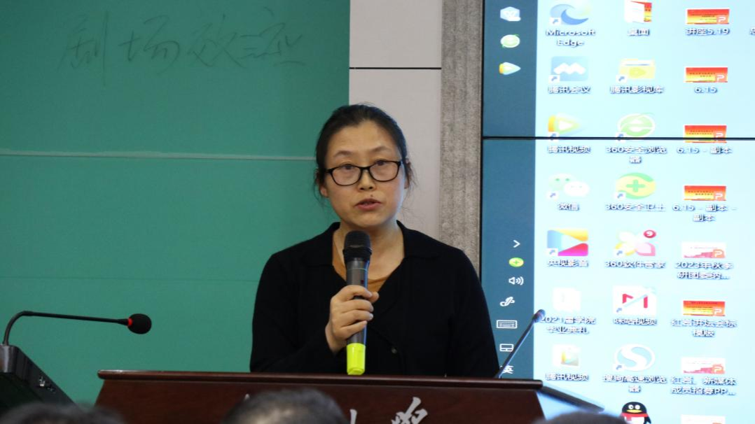 蒋荣副教授对第一组选手的表现进行点评。她在肯定同学们优秀表现的基础上提出建议,如部分同学选题过大,无法在十五分钟之内进行详细的讲解和阐述,同时强调同学们不能忽视理论知识的深入讲解,要强化知识点的理解和记忆。