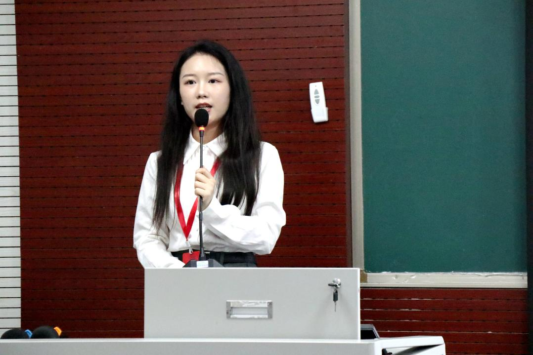 随后,活动进入主题宣讲环节。文心雨以《忆革命英魂传红岩精神》为题,深情回顾了红岩先烈们的英勇事迹和坚定信念。她以中共中央南方局在红岩结庐为起点,讲述了红岩精神的灵魂性人物周恩来同志的卓越贡献。并通过视频为同学们立体地展现了江竹筠、小萝卜头以及刘国鋕等先烈在敌人残酷迫害下,坚守信仰、不屈斗争的壮烈故事。