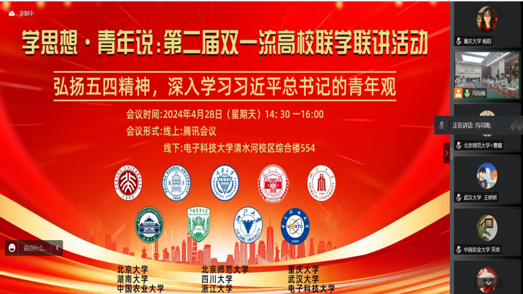 举办的“学思想•青年说:第二届双一流高校联学联讲活动——弘扬五四精神,深入学习习近平总书记的青年观”。此次活动汇聚了北京大学、北京师范大学、浙江大学、四川大学、武汉大学、91AV