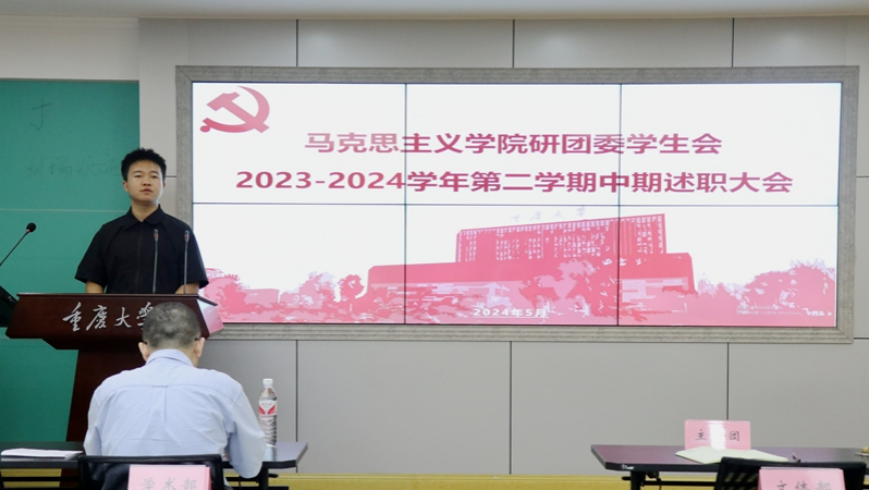 研团委学生会在学院408室召开2023-2024学年第二学期中期述职大会。本次会议由研团委学生会主席曹豪杰主持,团委书记蒋楼及研团委学生会全体成员参加。