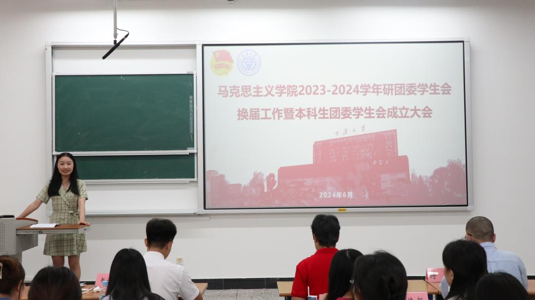 2023-2024学年研团委学生会换届暨本科生团委学生会成立大会在研究生院108室举行。院党委副书记、纪委书记袁利、团委书记蒋楼出席会议,研团委学生会第七届研究生会书记团成员、主席团成员、各部门部长以及2023级硕士研究生、本科生参加此次会议。换届大会由王益萍主持。