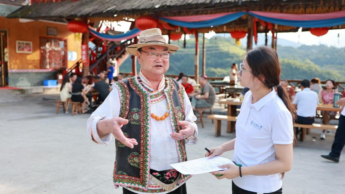 下午,实践团深入石椅村产业振兴最前沿,实地走访当地的“党员示范民宿”,并与羌年省级非遗传承人母广元展开了亲切交流。