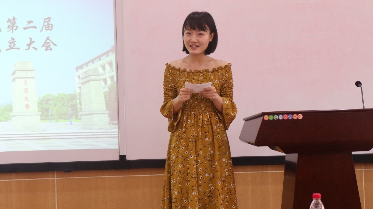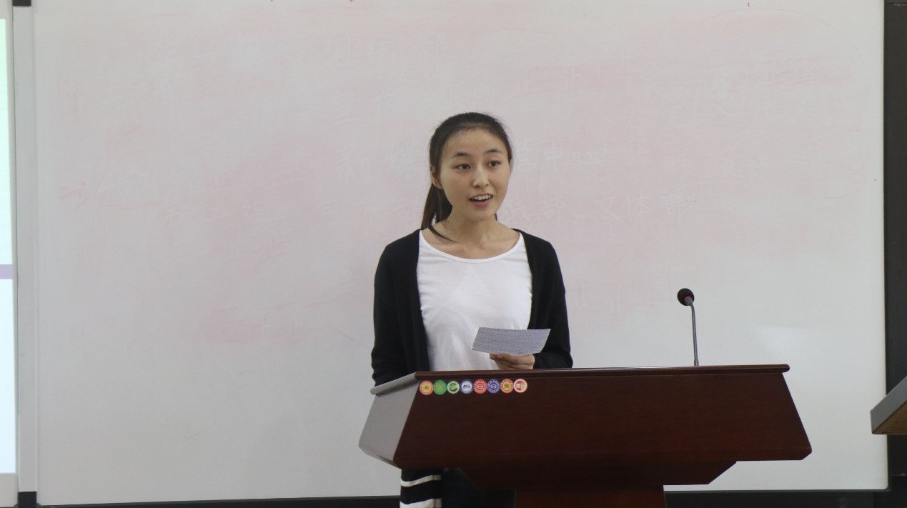 新进干事王玉娜在代表发言时谈到作为新一届学生会的一员,将在老师和学姐学长们的带领下,沿袭传统、发扬创新、团结实干,切实为同学们服务,为马院这个大家庭贡献出自己的力量!