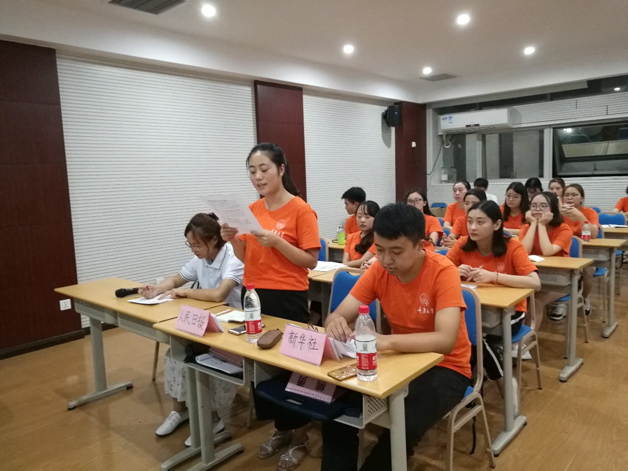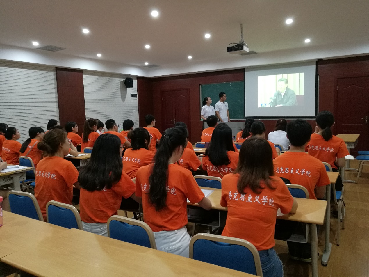 此次党团活动以模拟“新闻联播”的形式开展,创意新颖,效果显著,在场同学纷纷踊跃参与。本次活动还得到校研团委学生会的大力支持,校研团委学生会两位主要成员到场与同学们一起参与活动。与会同学首先观看了新闻联播关于习近平总书记“7•26”重要讲话系列报道视频,通过视频学习,同学们进一步领悟了习总书记讲话精神。