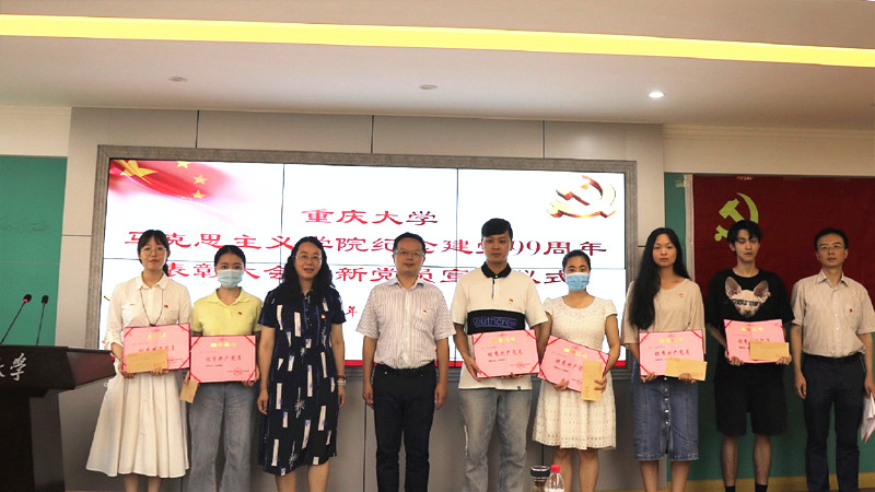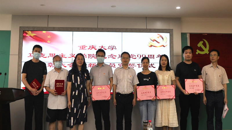 学院党委书记罗滌、副院长徐鲲为优秀共产党员罗慧莲、王超、周志永等13位同志、优秀党务工作者王小凤和先进党支部中国近现代史纲要党支部进行了颁奖。接下来,罗滌书记带领学院新党员面对党旗庄严宣誓,老党员也一起重温了入党誓词。