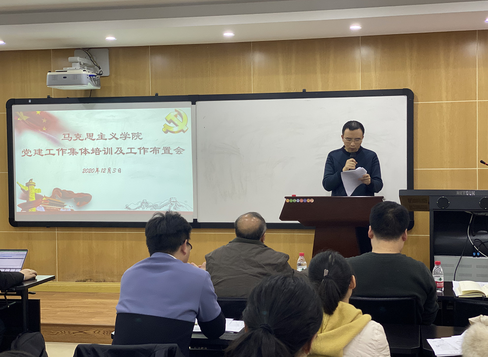 2020年12月3日下午,学院在412教室召开党建工作集体培训及工作布置会,学院党委书记罗滌,党委副书记温健琳,学院各党支部书记、支部委员参加会议,会议由党委书记罗滌主持。