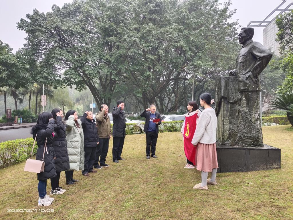A区周恩来雕像处面向中国共产党党旗重温入党誓词,感受中国共产党人为国家和民族命运奋斗的坚定与执着,感受中国共产党人为中国人民谋幸福、为中华民族谋复兴的初心和使命,感受作为新时代高校思想政治理论课党员教师的责任与担当。
