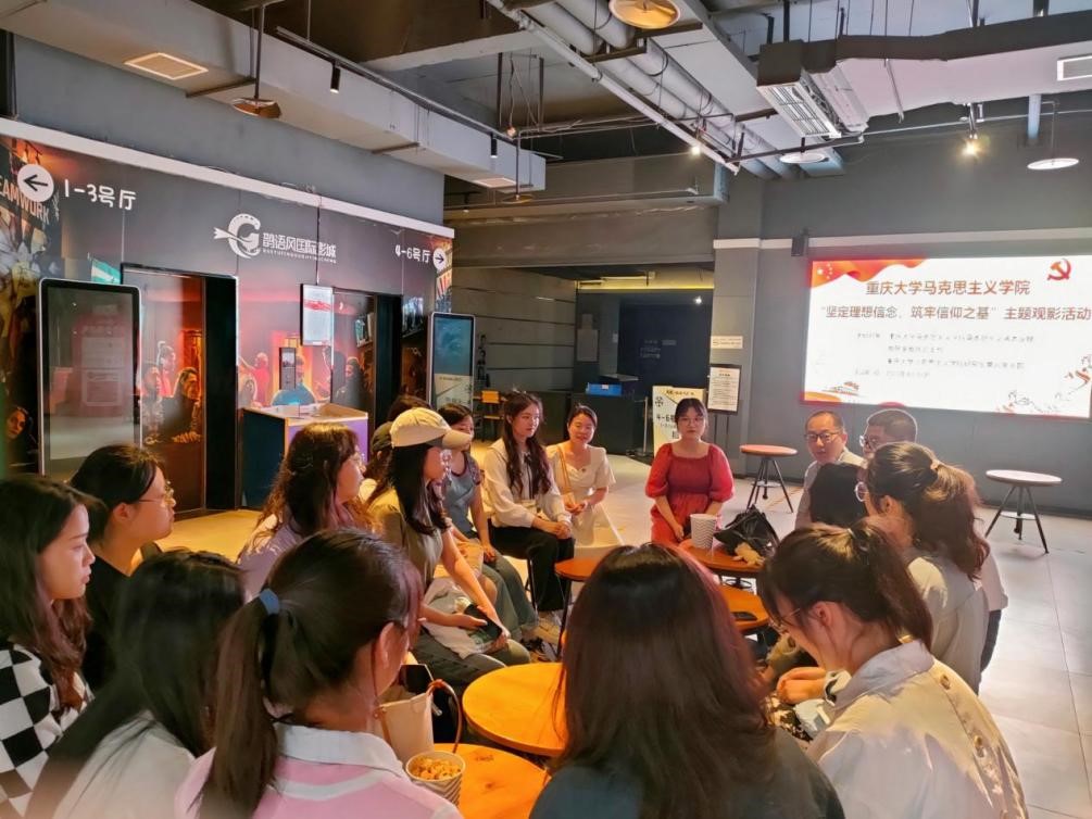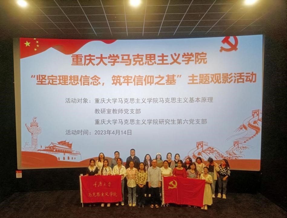 为贯彻落实党的二十大精神,传承和弘扬以伟大建党精神为源头的中国共产党人的精神谱系,引导党员用党的历史经验启迪智慧、砥砺品格,2023年4月14日下午,我院研究生六支部联合马克思主义基本原理教研室教师党支部开展“坚定理想信念,筑牢信仰之基”主体观影活动。马克思主义基本原理教研室教师党支部书记蒋楼、党员李旭阁、王海龙、范海群,研究生六支部全体党员、部分入党积极分子参加此次活动,活动地点在欣阳广场大地鹊语风影城。
