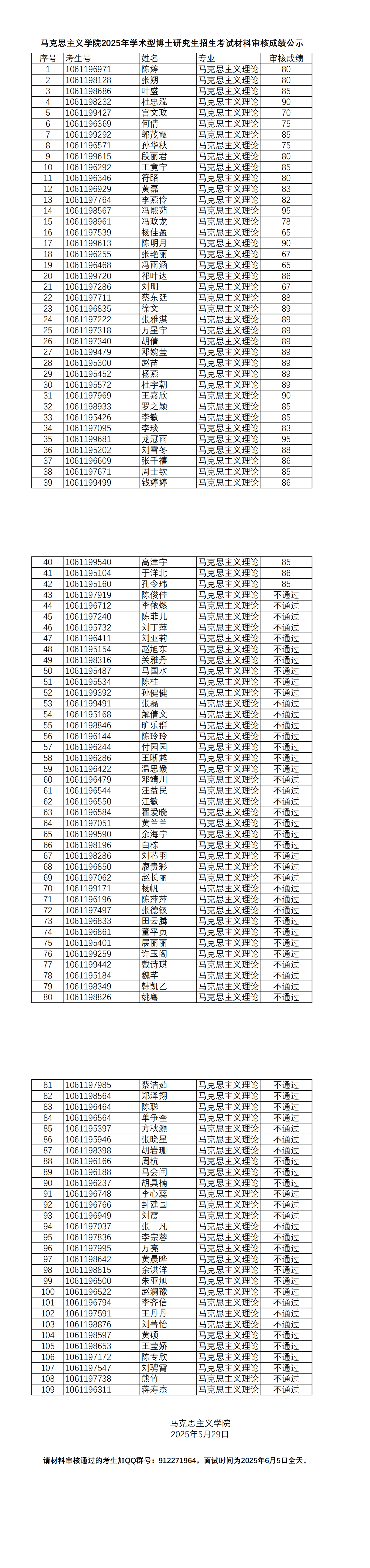 91AV 2025年学术型博士研究生招生考试材料审核成绩公示