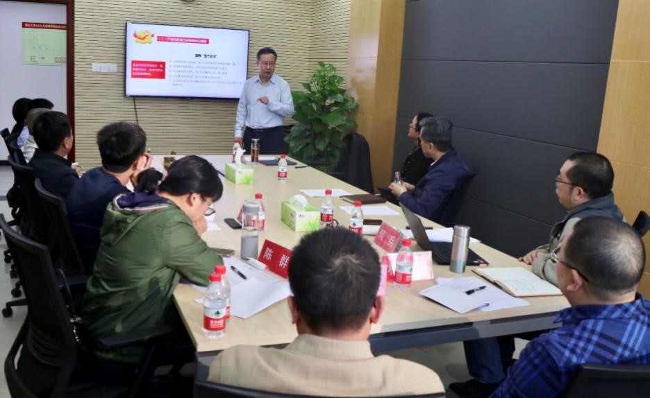 院长张邦辉首先结合学院工作,讲了主题为“加强党的政治建设“的专题党课。支部书记何兵同志组织参会党员一起认真学习了习近平总书记在中央党校(国家教育行政学院)中青年干部培训班开班式上的重要讲话,以及习近平总书记在中央政治局第十七次集体学习上关于推进治理体系和治理能力现代化的重要讲话。支部党员先后发言畅谈学习体会,张礼建同志认为要积极做好青年学生思想引领,让他们经过思想锤炼、政治历练和实践检验后担当起复兴民族的重任。张德昭同志认为,思政课教师要不忘初心,永葆对党的赤子之心,增强教学科研能力,注重对学生的价值引领。何跃同志谈了对中国特色社会主义的制度优势的深刻认识。何兵同志提议教研室要及时开展集体备课,将党的最新理论成果融入研究生思想政治理论课教学中。