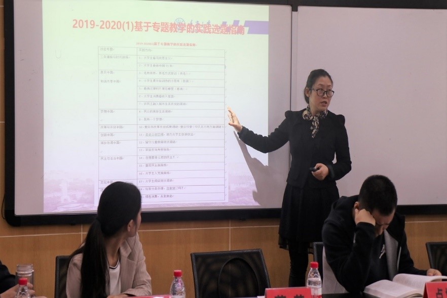 吕进对学院科研工作的经验和具体做法作了介绍。随后,我院马克思主义中国化教研室蒋荣副教授就“理论与现实融合的研究型教学”模式进行了现场展示。