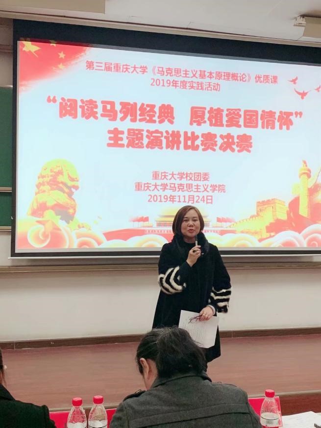 马克思主义基本原理教研室庞永红教授对本次演讲比赛进行了点评和总结。她从选手们演讲的选题、理论基础、思想内容、语言表达以及综合表现等多个维度进行了鞭辟入里地分析,并鼓励在场全体同学要树立理想、坚定信念、刻苦学习、勇于实践,将来以实际行动为祖国和人民做贡献。