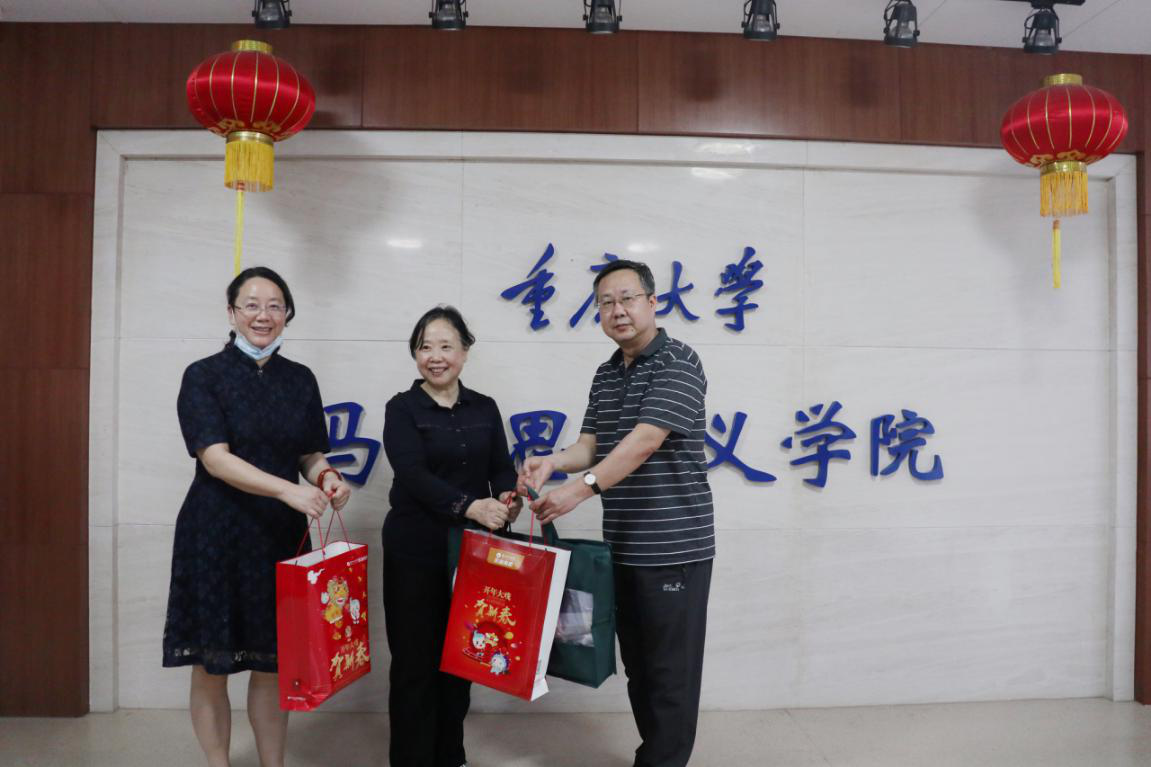张邦辉院长向肖云教授表达了诚挚的祝福,对她为学院发展付出的辛劳表示诚挚地感谢。罗滌书记表达了对肖云教授的敬意,并祝福她在未来的日子里生活丰富多彩,希望肖老师退休后能一如既往地关心、支持学院的发展。罗书记和张院长为肖老师送上了退休慰问品并合影留恋。