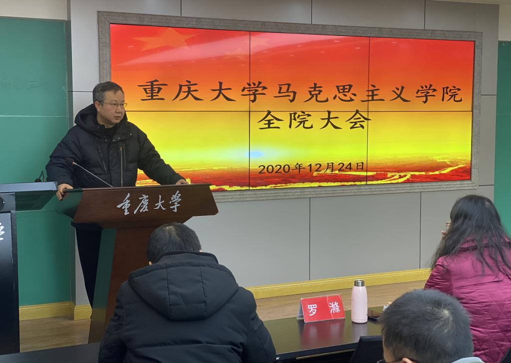 2020年12月24日下午,学院在408教室召开全院教职工大会,学院领导班子参加会议,党委书记罗滌主持会议。
