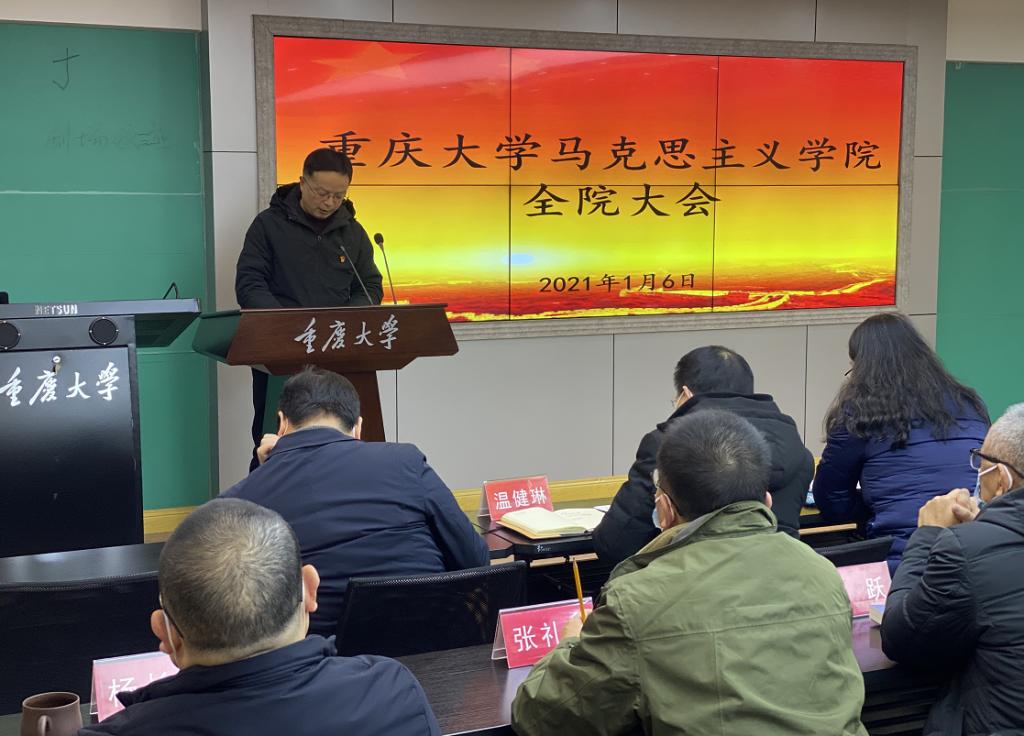 随后,相关学院负责人对期末考试成绩登载、重庆市研究生阅卷、疫情防控、寒假安全、项目申报等各项工作进行了布置和强调。