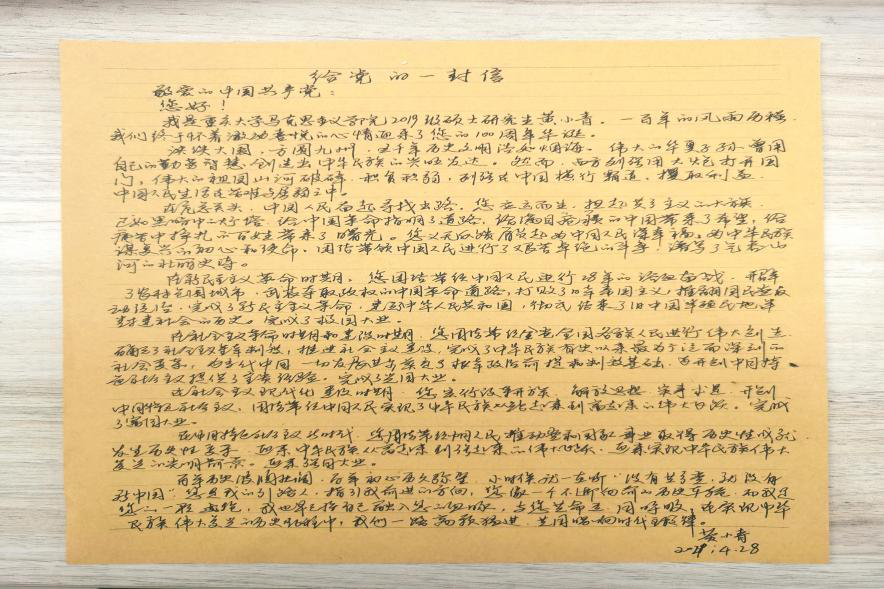 2019级研究生党员叶金凤爷爷写给党组织的信