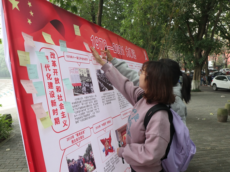 本次建党百年主题展览活动帮助广大师生进一步深入了解了中国共产党的光辉历程、伟大成就和宝贵经验。参与同学纷纷表示,此次展览活动使他们备受鼓舞,在未来将用崇高信仰铸就时代忠诚,用不懈奋斗镌刻时代担当。