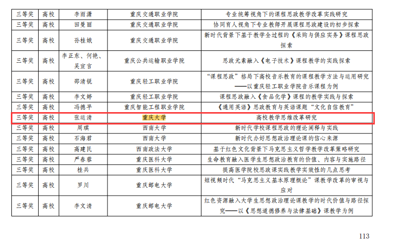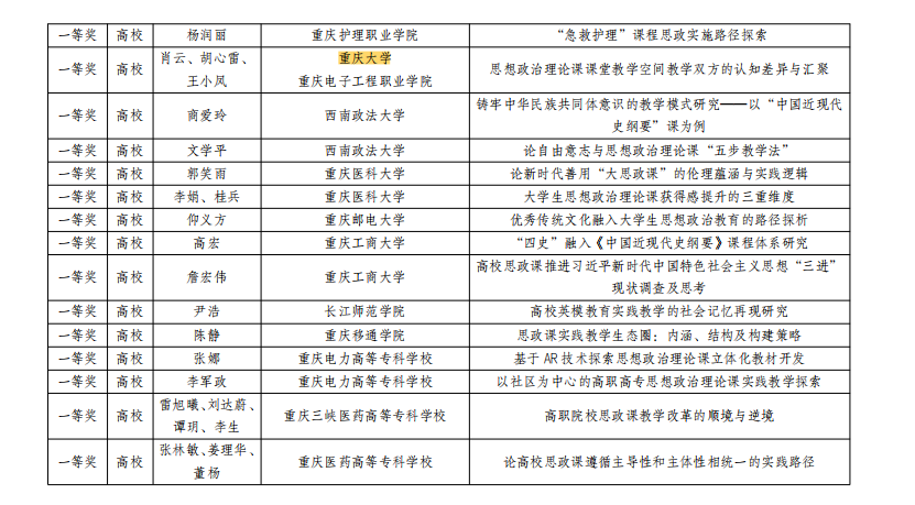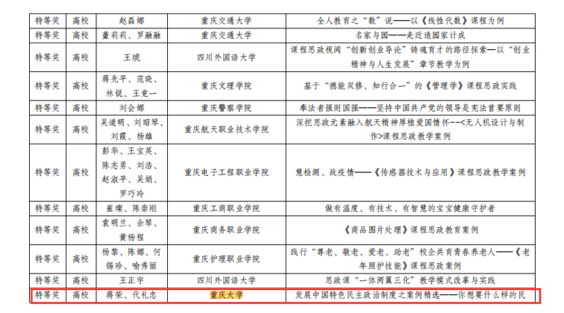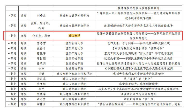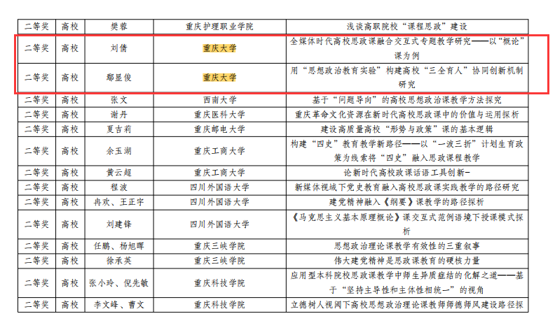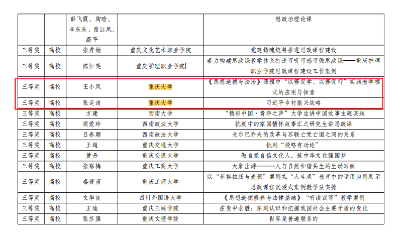 多位老师在重庆市2021年思政课程与课程思政(学科德育)优秀案例及论文评选中获奖。